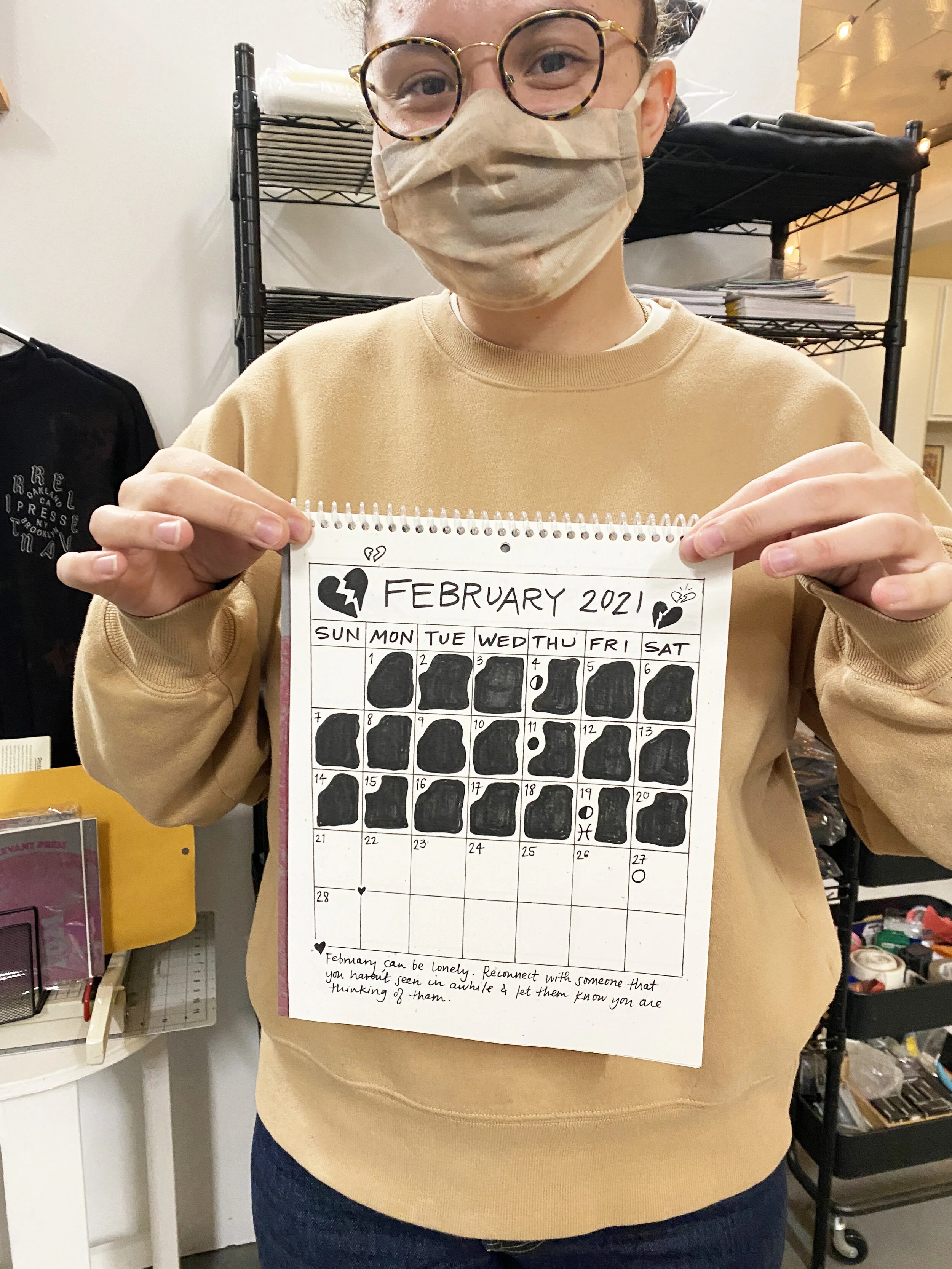 A big ol’ shout out to Sarah Francis (cover design), George Salazar and Sam Levin (self love assistance), and last but not least our very own Lizz Carlton and her mom Laurie for hand drawing everything with such care! Printing and binding by Mollie n Holly, the cover paper is Classic Crest Concrete and inside pages are Astrobright Stardust White, coils are.. glow in the dark! For these bleak times, we pray for an easier 2021. Mercury and pandemic please have mercy on us all 🙏 🌚