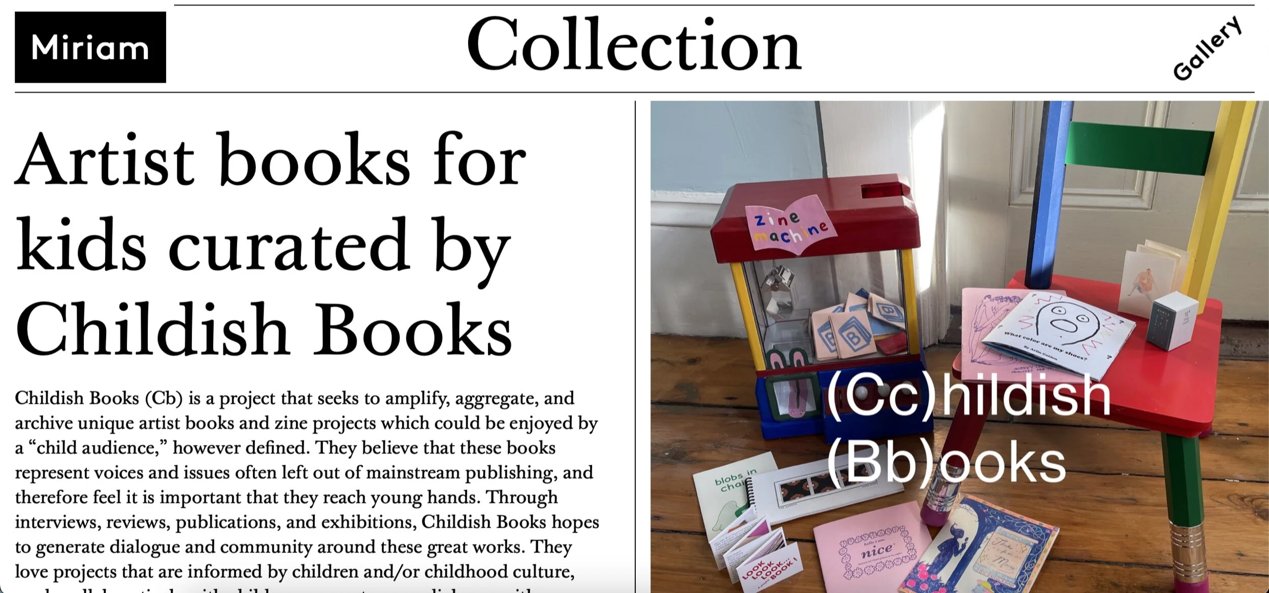 We <3 Miriam Gallery! February 04, 2021 by Irrelevant Press Are you in NY? Are you anywhere in the world? Check out Miriam Gallery! Specifically their spotlight of Childish Books! Curated artist books for kids. So grateful to be a part of something so wonderful.https://miriam.shoplightspeed.com